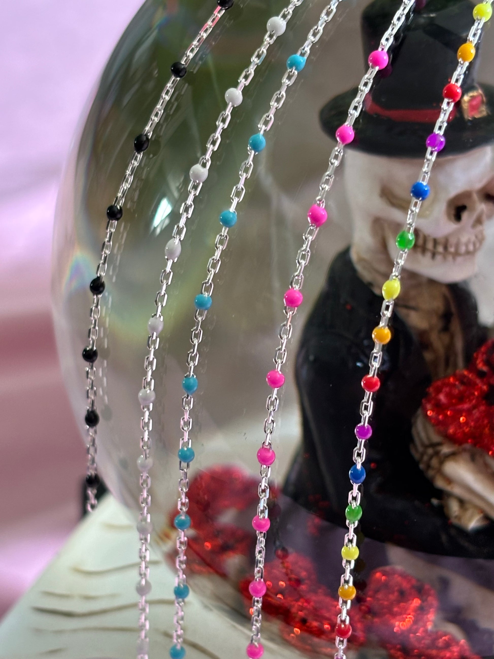Premium enamel detailing set on genuine American-standard 14kt gold filled or 925 sterling silver cable chain. This piece offers a delicate pop of color with a refined, high-quality finish—perfect for adding subtle personality to permanent jewelry designs.